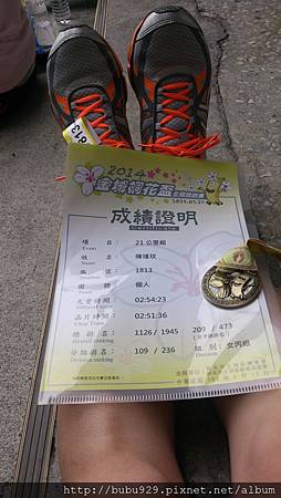 在最後兩公里真的是個考驗,跑回到和平路的路口之後,終於帶著傻笑通過終點! 成績2小時51分36秒,女子總排名 209/473~~~ (看來可以有很大的進步空間唷!!)