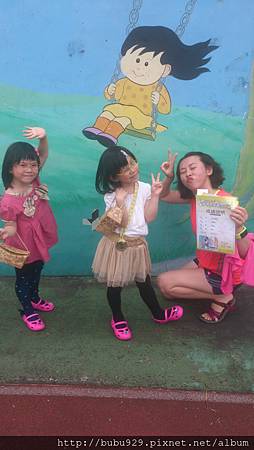 領了獎牌、成績證明後,我就先默默緩和收操,等爸比跟小妞們的到來~~