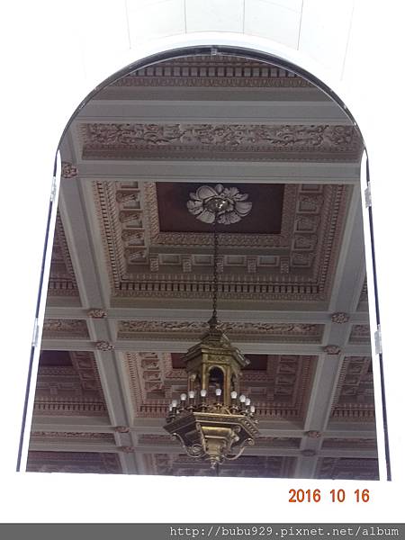 我們繞了一圈,在前後門、窗邊探探頭,警衛們非常盡忠職守、不厭其煩的打發我們走。無緣目睹手上旅遊書中所提到內部的壯麗,這是唯一的一張很隨便快速拍下此張照片。