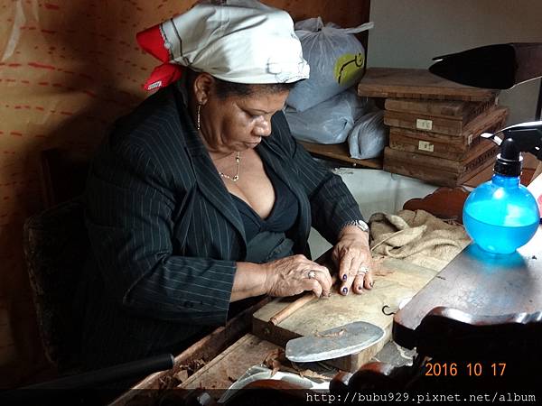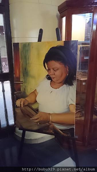 在一旁有位女士安靜的捲著菸,同行友人Ama 說,她正是門口那幅油畫上的女人,該不會是首席捲菸師中的首席吧~?