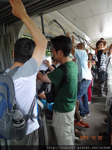 我們就站在兩個車廂中間的連接處,盯著車行經的馬路討論著路線 (結果還是搞錯 )。