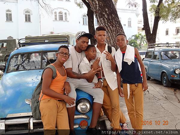 這幾位年輕人,主動要我拍他們。高高的那個在我拍完了之後說要給他1CUC,結果被戴帽子的那位大哥巴大頭..... XD