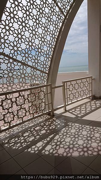凸出在馬六甲海峽海面上的清真寺,如果海水漲潮的時候,整個建築像是浮在海面上。