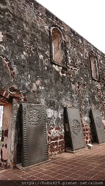 這最早先是葡萄牙人的教堂,後來換荷蘭人來到這裡,興建了更大的教堂後,這裡就成了埋葬有名望的人的墓園。所以在廢棄的建築物裡可以看到許多大型墓碑。